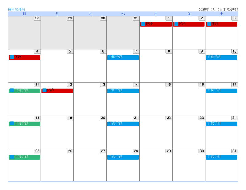 1/1(木)1/2(金)1/3(土)1/4(日)1/12(月)は終日休診です。