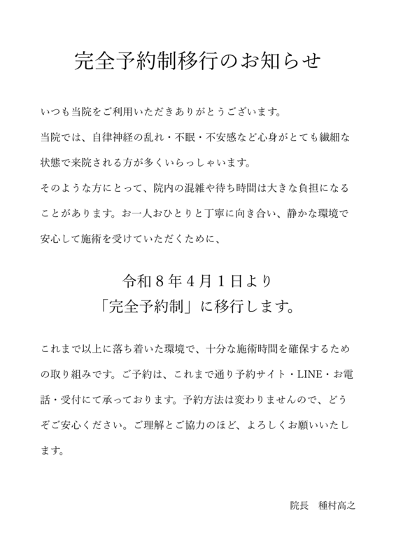 2026.02.20 お知らせ 【3月の営業について】 3/1(日)は終日休診です。3/20(金)は午前中のみ通常どおり営業します。よろしくお願いいたします。営業カレンダーはこちらから↓https://tanemura-care.com/ご予約はこちらから↓https://tanemurasekkotuinn.re-works.net/reserve/ PDFを開く