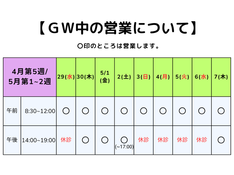 2026.03.19 お知らせ 【4月の営業について】 4/19(日)は終日休診です。4/29(水)は午前中のみ営業します。よろしくお願いいたします。営業カレンダーはこちらから↓https://tanemura-care.com/ご予約はこちらから↓https://tanemurasekkotuinn.re-works.net/reserve/ PDFを開く